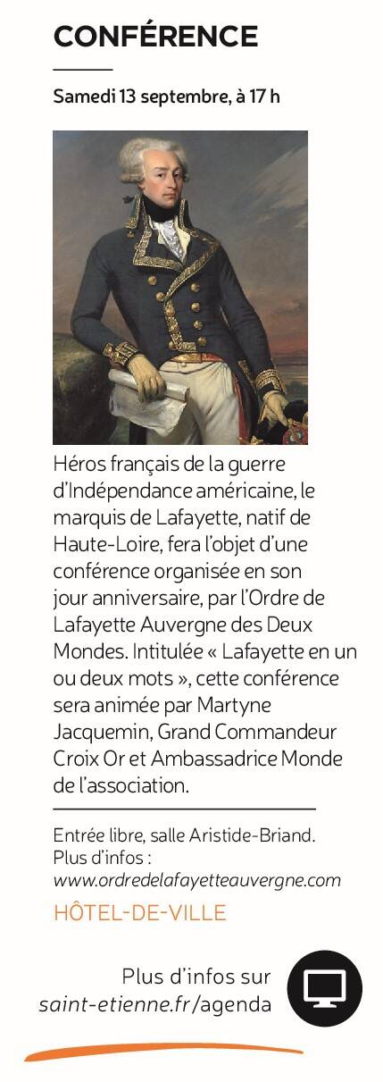 Conférence Lafayette 13 septembre 2025 à St-Etienne par Martine Jacquemin (anniversaire 06-09-1757)